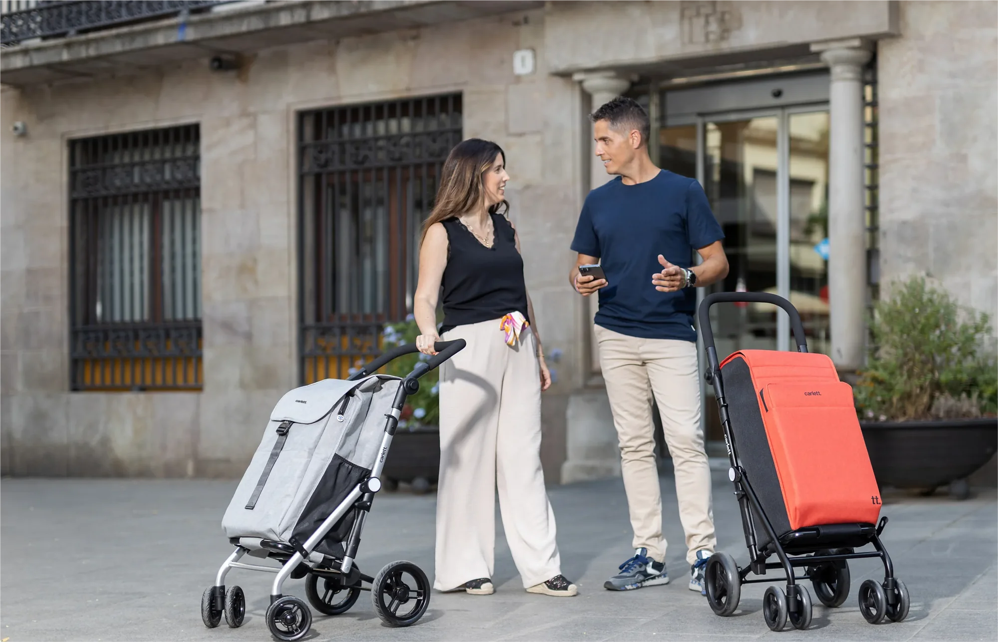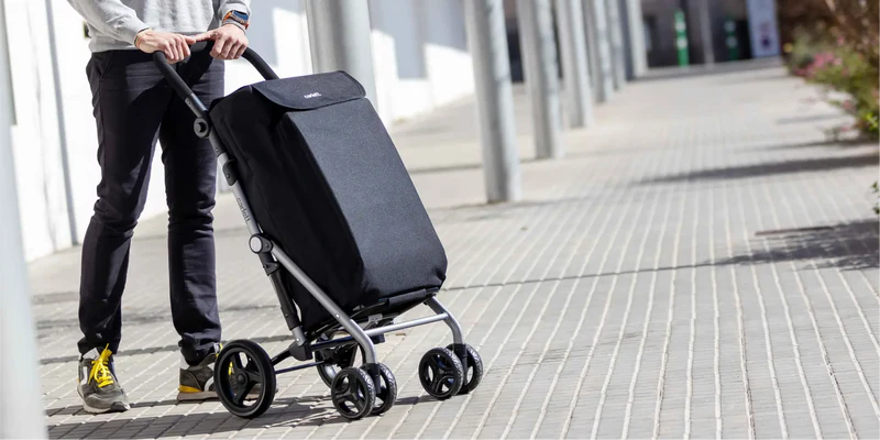 Chariots robustes et pliables , fabriqués avec des matériaux de haute qualité, avec freins et grande capacité . Que demander de plus ? Du style. Et ils le sont.